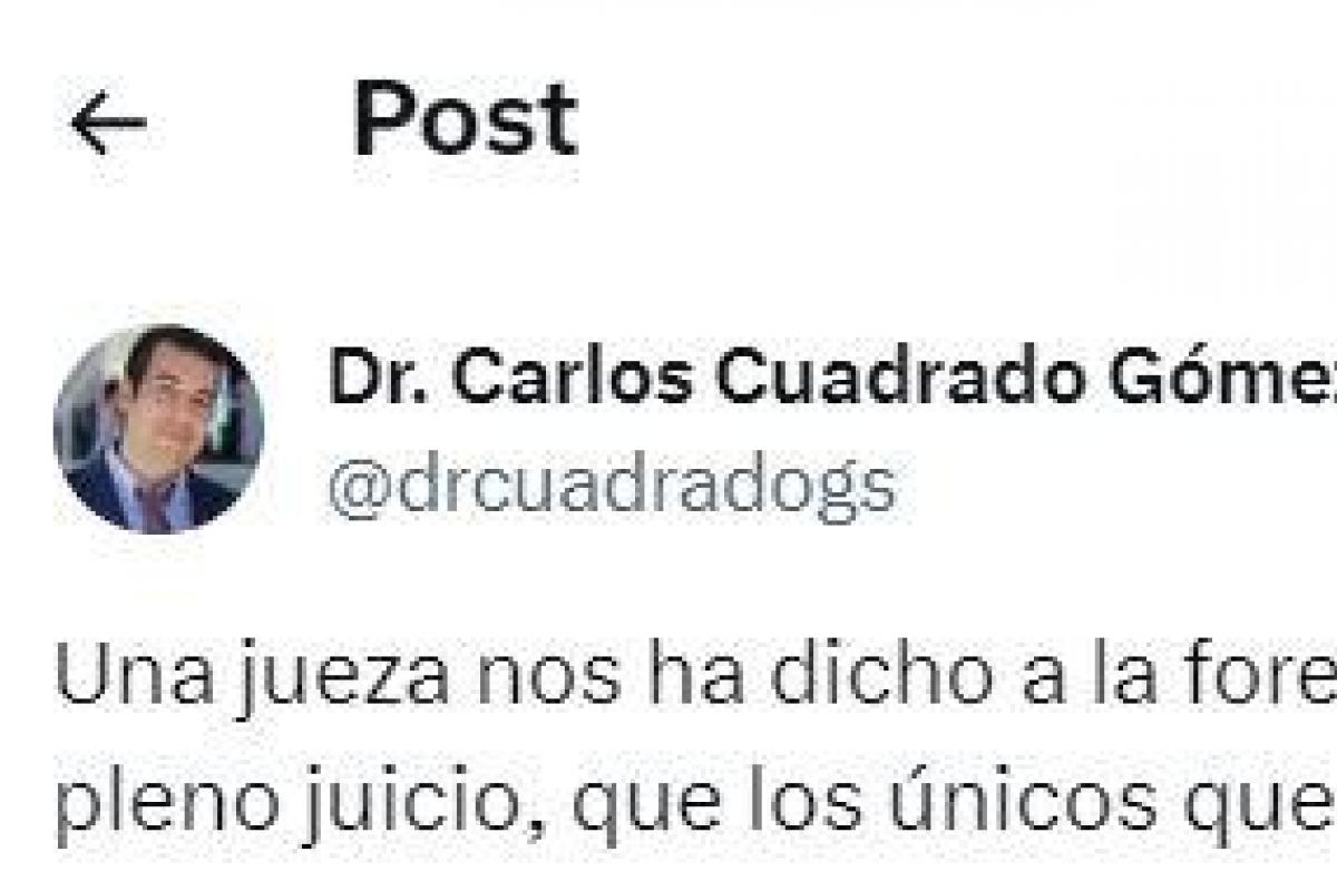 El presidente de la Asociación Profesional de Criminólogos de España, el doctor Carlos Cuadrado, ha criticado en su cuenta de X (@drcuadradogs), antes Twitter, lo que ha hecho una jueza "en pleno juicio".