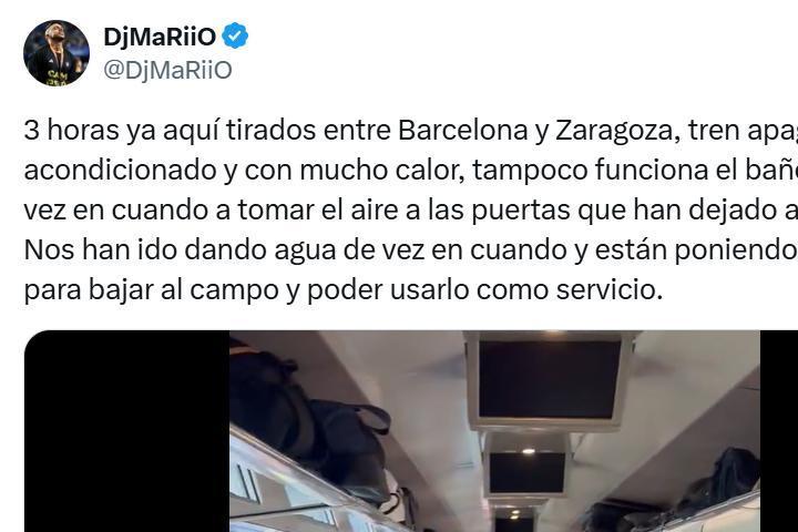 "Tres horas ya aquí tirados entre Barcelona y Zaragoza, tren apagado sin aire acondicionado y con mucho calor. Tampoco funciona el baño", ha comentado el youtuber.