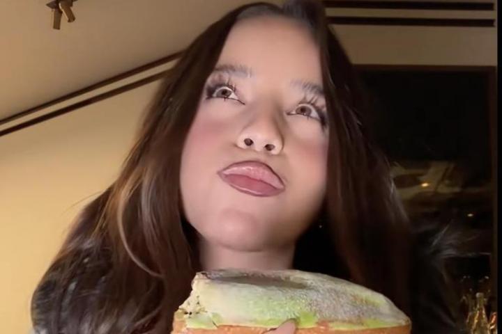 La artista argentina, como muchos otros antes, se han grabado comiendo cuatro piezas míticas del surtido de Grolet: un postre de pistacho y la versión pastel de un pistacho —sí, otro—, un cacahuete y una nuez.