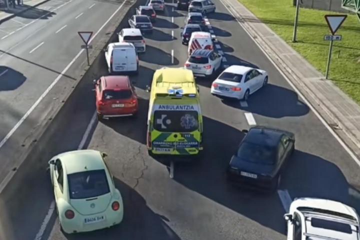 En las imágenes se puede ver cómo un grupo de coches se aparta de la carretera cuando la ambulancia, con sus señales sonoras y lumínicas, pasa a toda velocidad porque está en una urgencia.
