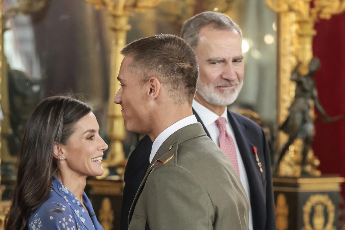 En ese momento, tanto al rey Felipe VI como la reina Letizia se giran para ver la reacción de su hija al saludar al joven. Ambos dibujan una sonrisa que está dando muchísimo juego en las redes.