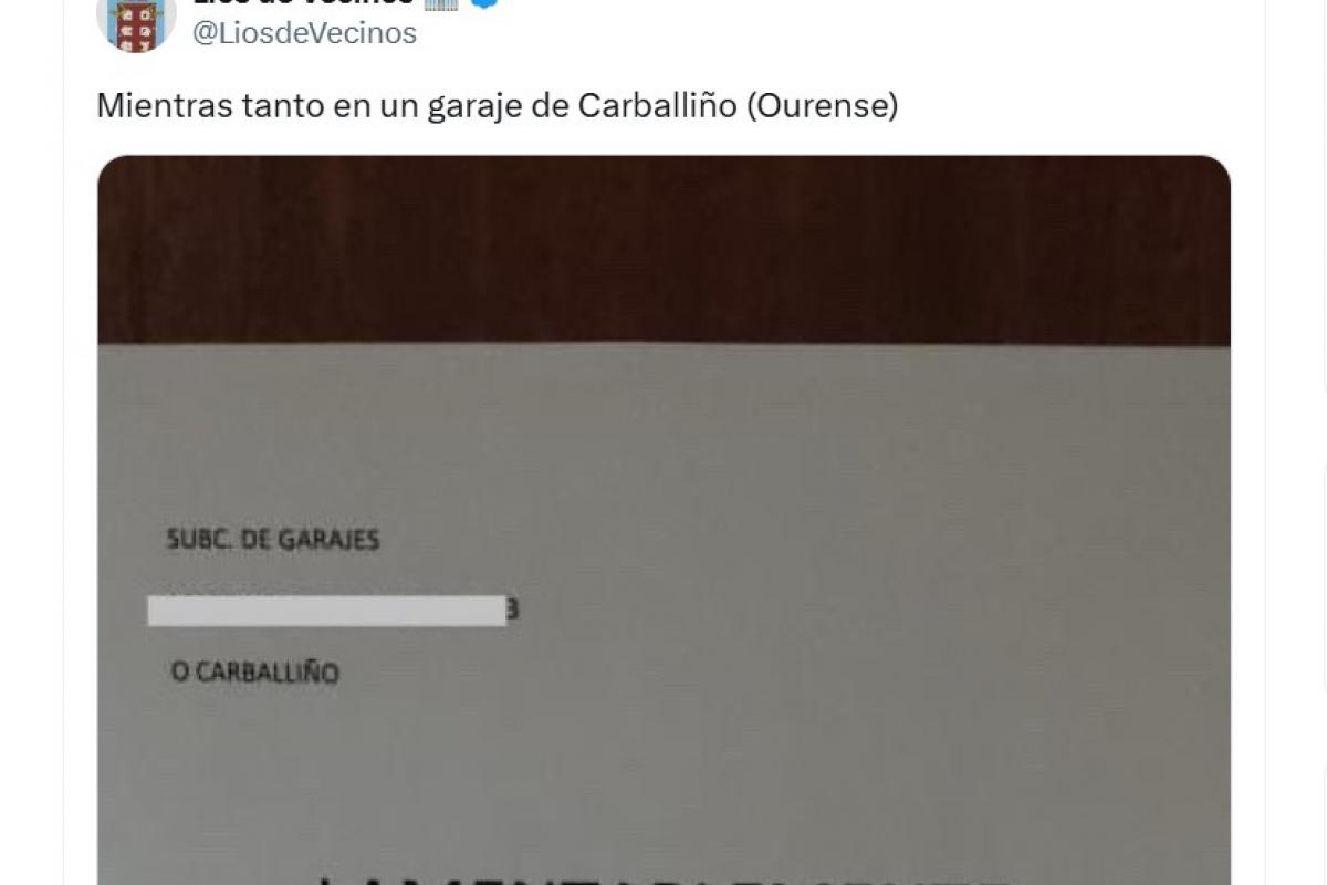 Lo ha subido a la red social X la popular cuenta @LiosdeVecinos y en el cartel en cuestión se puede leer: "El garaje no es lugar para sacar a los perros a que hagan sus necesidades".