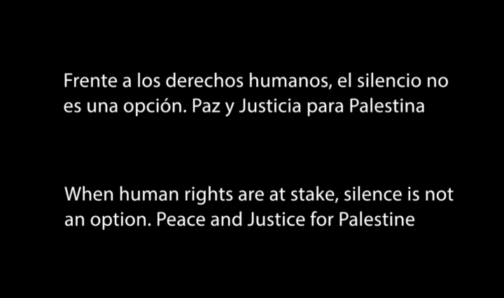 "Frente a los derechos humanos, el silencio no es una opción. Paz y Justicia para Palestina", rezaba el escrito, con letras blancas y un fondo de color negro, segundos antes de que arrancara la final.
