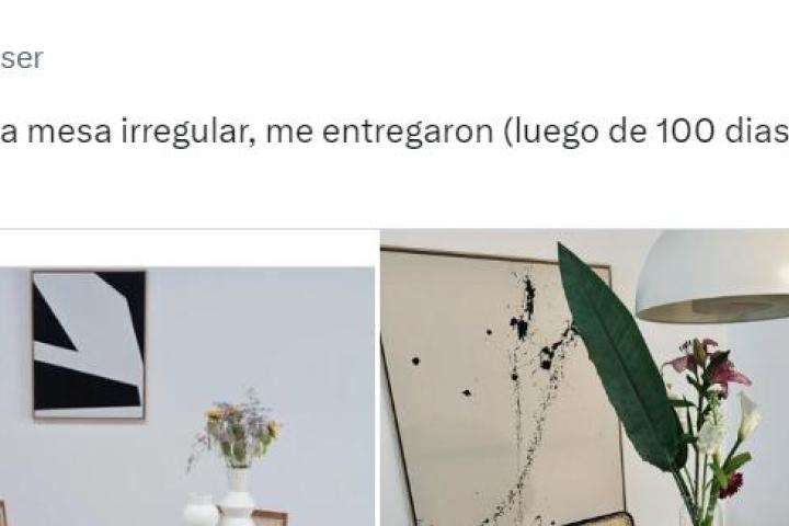 Cuando se hacen pedidos, ya sea de ropa o muebles, a menudo no se puede estar seguro de lo que puede llegar e, incluso, puede suponer una gran sorpresa. Esto es lo que le ha ocurrido a la usuaria de X @finitaser, quien ha contado lo que le ha llegado al encargar una mesa irregular.