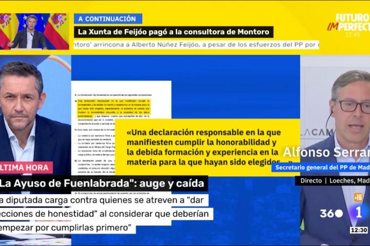 El secretario general del PP de Madrid, Alfonso Serrano, ha estado en Mañaneros, el programa de Javier Ruiz en TVE, donde han tenido una más que tensa discusión a cuenta de la dimisión de Noelia Núñez por falsificar su curriculum.
