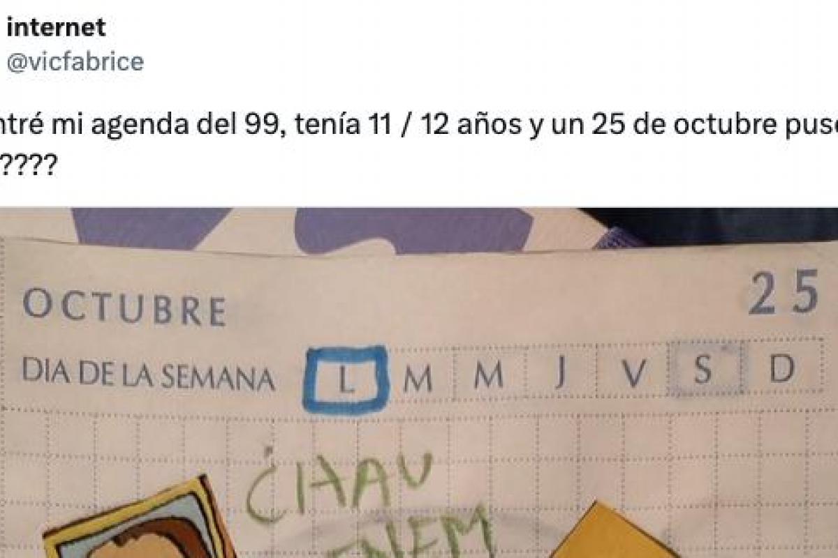La usuaria de la red social X @vicfabrice ha encontrado oro. Pasa mucho cuando rebuscas en cajas que hay en las estanterías altas de los armarios, que se hallan recuerdos olvidados. En su caso ha sido una agenda del 1999, cuando tenía unos 11 y 12 años y, viendo lo que había apuntado, le ha sido difícil no inmortalizarlo en varios tuits.
