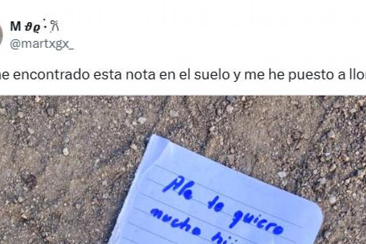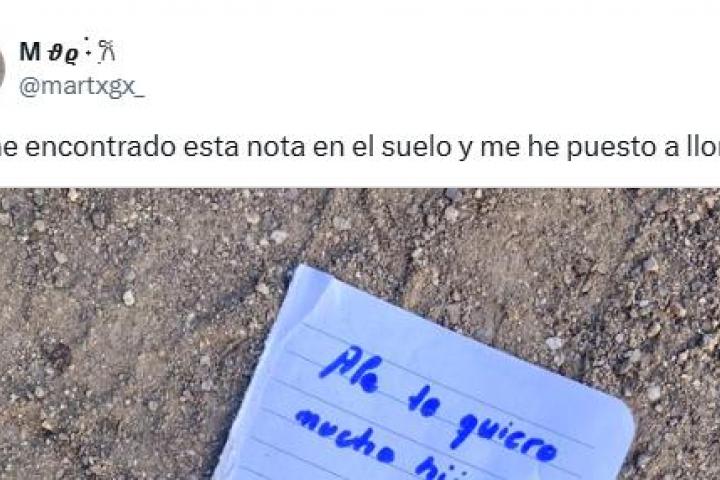 "Me he encontrado esta nota en el suelo y me he puesto a llorar", ha escrito la tuitera junto a la nota. El tuit de esta usuaria se ha hecho viral superando las 200.000 reproducciones y los 11.000 me gusta. Además, también ha cosechado multitud de respuestas.