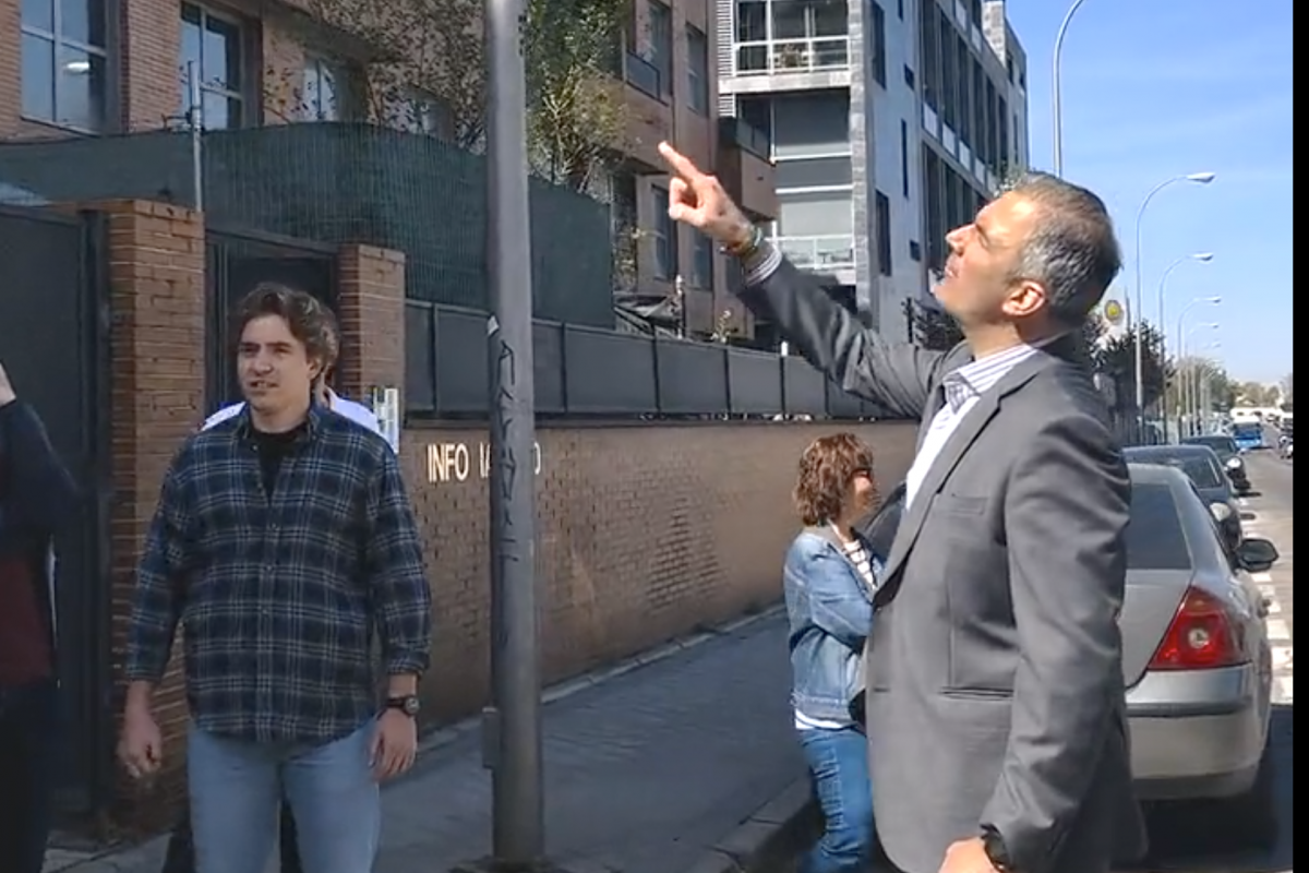 Tras empezar preguntando "dónde está el perroflauta", el vídeo muestra a Ortega Smith gritando desde la calle al okupa, que se encontraba en el balcón de la casa.