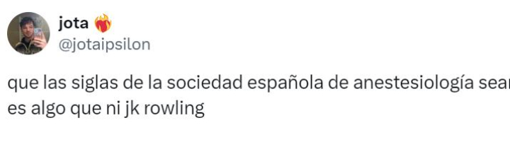 "Que las siglas de la Sociedad Española de Anestesiología sean SEDAR es algo que ni J. K. Rowling", ha escrito @jotaipsilon, recibiendo más de 136.000 visualizaciones y más de 8.000 'me gusta' en menos de 24 horas.