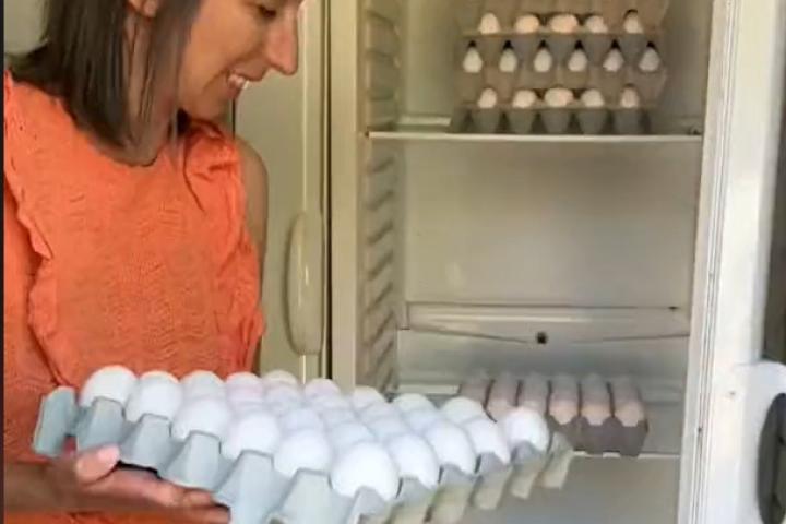 En este caso, ella ha ido a un autoservicio de huevos, y ha revelado que se trata de una caseta de madera que tiene dentro dos neveras con cartones de 30 huevos, una para comprar en ese momento y otra que contiene paquetes de huevos reservados. Asimismo, puedes apuntarte en una pizarra para incluirte en las listas para las reservas.
