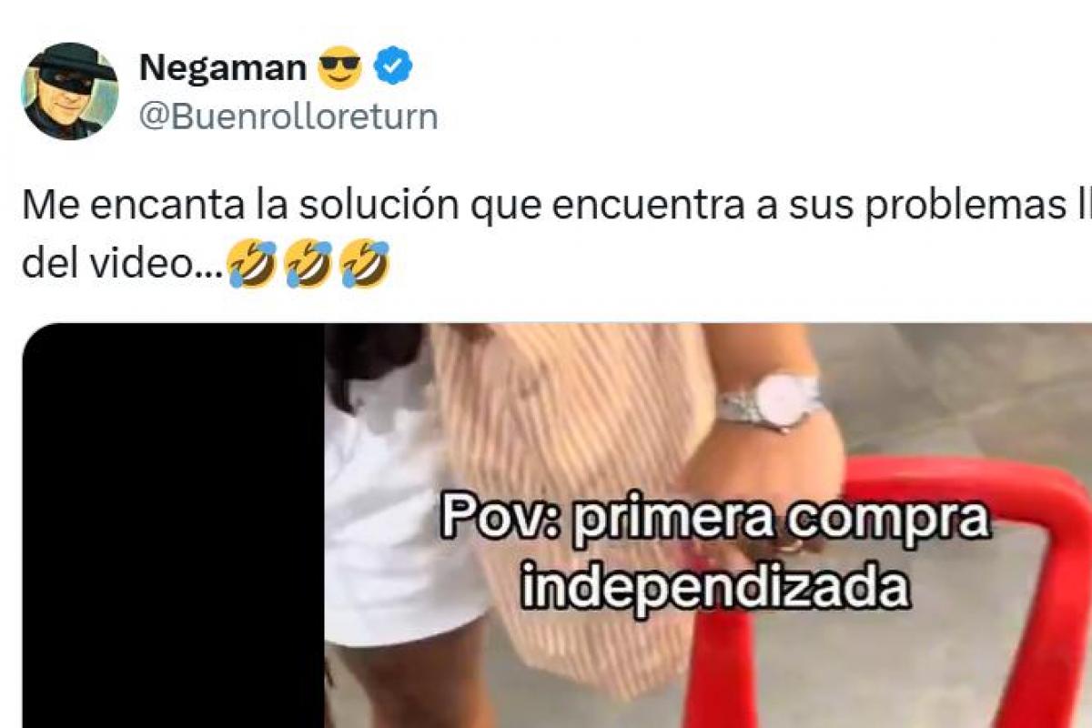 "Me encanta la solución que encuentra a sus problemas llegando al final del video...", ha comentado el usuario de la red social X, anteriormente conocida como Twitter, @Buenrolloreturn, justo antes de adjuntar el TikTok de la humorista que habla sobre su primera compra como independizada.