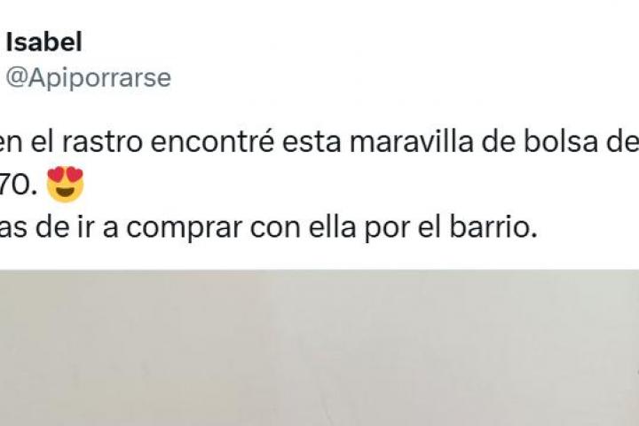 "Ayer en el rastro encontré esta maravilla de bolsa de ultramarinos de los años 70. Ganitas de ir a comprar con ella por el barrio", ha manifestado la usuaria emocionada con su compra.