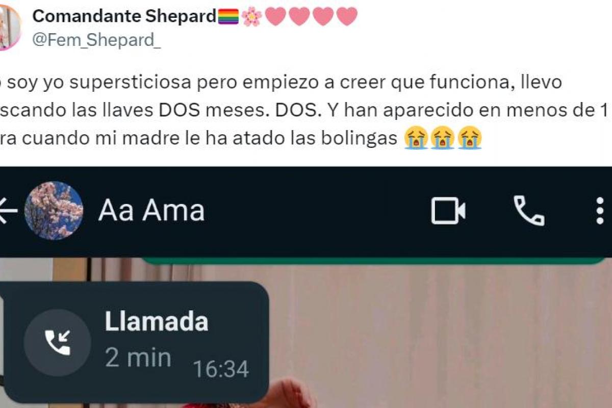 La usuaria de X @Fem_Shepard_ ha compartido en la red social la conversación que ha tenido con su madre en WhatsApp tras perder las llaves y el resultado se lleva más de 5.000 me gusta en unas horas.