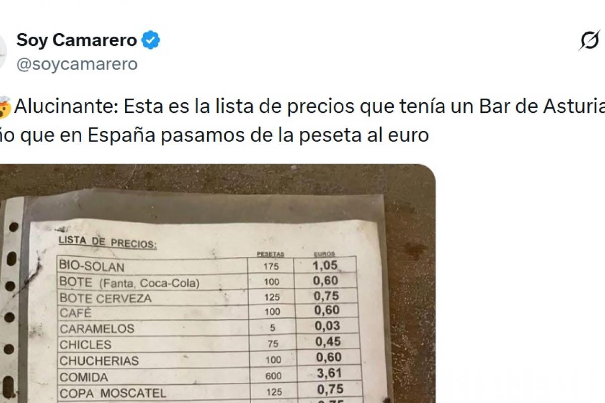Enseña los precios de un bar de Asturias al cambiar al euro y muchos no dan crédito: "Alucinante"