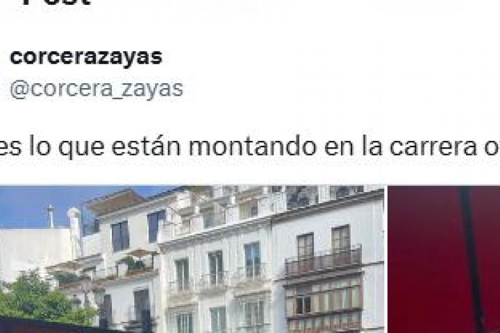 "Esto es lo que están montando en la carrera oficial", afirmó el usuario, junto a una imagen de una calle en la que la han vallado con una especie de paneles encima de las vallas para impedir ver las procesiones.