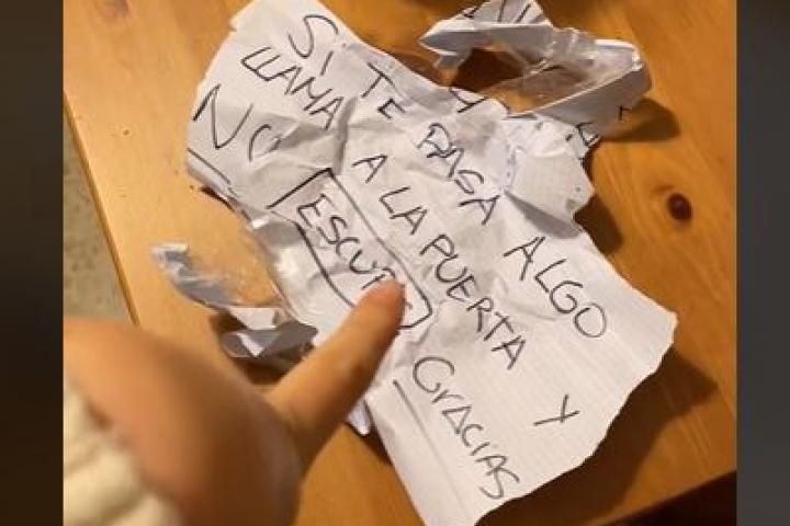 Sin embargo, la reacción de la persona ha sido arrugar el papel hasta el punto de romperlo: "Me lo he encontrado hecho una bola en el suelo del ascensor. Cuando he vuelto a salir, me he encontrado la bola de papel en nuestro felpudo".