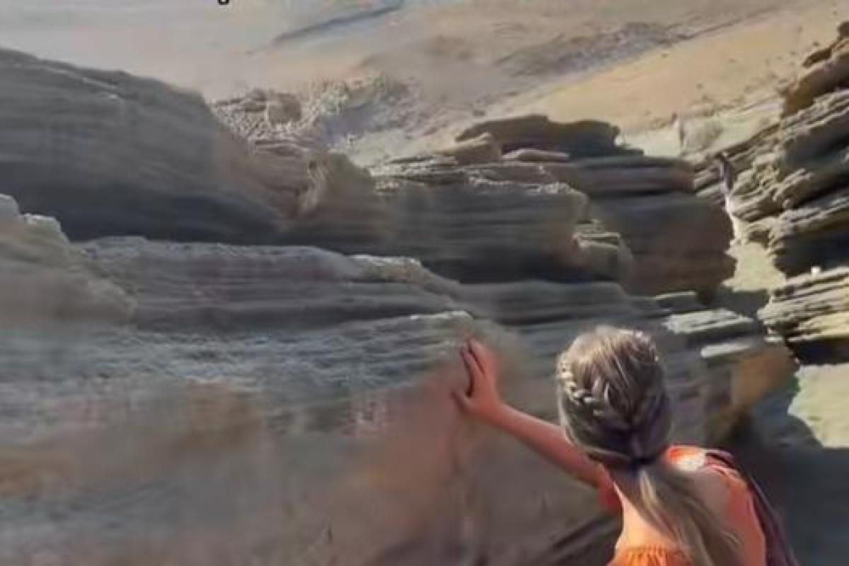 Un outfit que a todas luces no es el mejor para ir cómoda y segura a visitar Las Grietas, una parte de la zona volcánica de la isla de Lanzarote, ubicadas en la ladera del volcán Montaña Blanca.