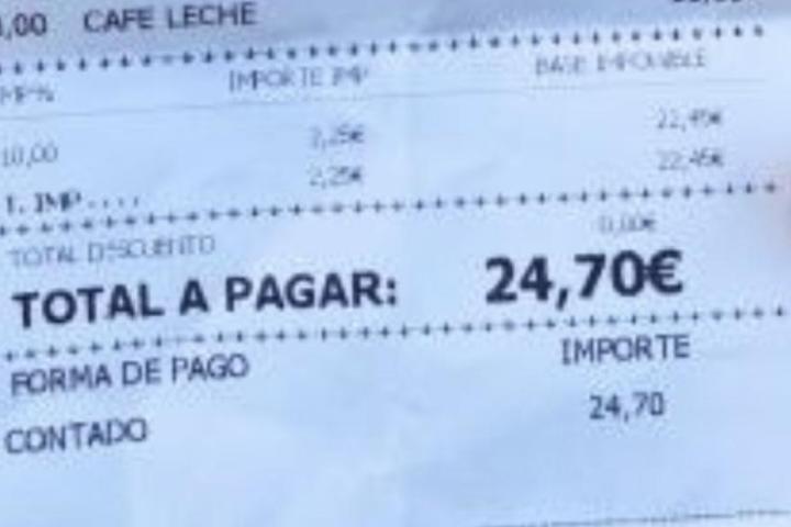 Pero la cosa no ha quedado ahí, lo mismo ha pagado por los cafés que han consumido. En total, 24,70 por cuatro cafés, un poleo menta y licor de hierbas (a 4,95).