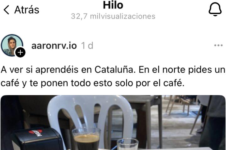 Otros directamente no creen que todo eso haya sido gratis con el café: "Eso no es una tapa, eso es un pincho entero con su zumo, eso no te lo dan gratis en ningún lado, es un desayuno entero que te has pedido y te estás tirando el moco para tirar hate contra Cataluña".