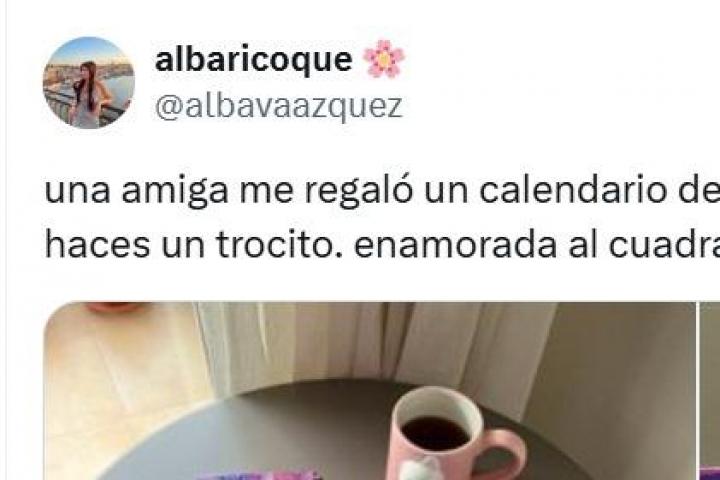 La tuitera Alba (@albavaazquez) ha publicado a través de su cuenta de la red social X, anteriormente conocida como Twitter, una publicación en la que ha compartido el original calendario de adviento que le ha regalado su amiga.