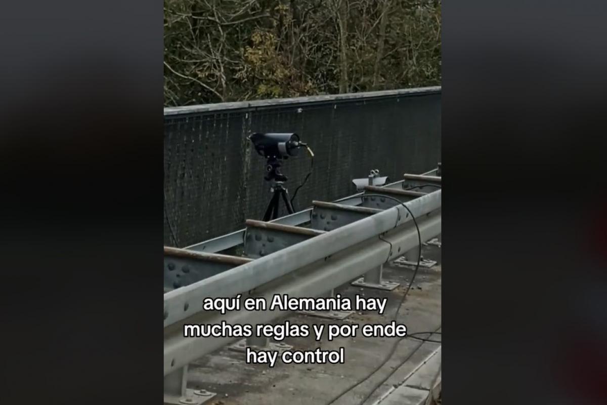 El usuario enseña en su vídeo una especie de radar colocado en un puente por encima de una autopista, mirando a los coches que vienen de frente. "Aquí en Alemania hay muchas reglas, por ende hay controles", empieza señalando.