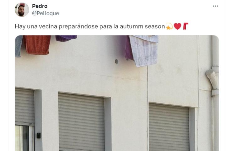 "Hay una vecina preparándose para la autumm season💫❤️🧣", ha escrito junto a la foto, en la que se ve cómo la vecina en cuestión ha tendido para secar una multitud de fulares, todos ellos en tonos muy típicos del otoño.