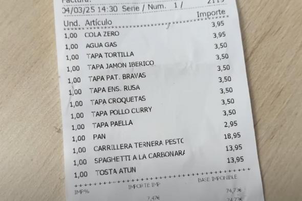 Después de probar platos de todo tipo: una ensaladilla rusa, tortilla de patatas seca, una tosta de atún, unas patatas bravas, croquetas y alguna que otra tapa más pidió la cuenta y ahí se llevó el susto.