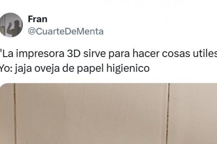"La impresora 3D sirve para hacer cosas útiles. Yo: jaja oveja de papel higiénico", ha manifestado el usuario, justo antes de adjuntar una fotografía en la que aparece un rollo de papel higiénico con cuatro patitas negras y una carita de oveja, unas divertidas piezas hechas con la impresora 3D.