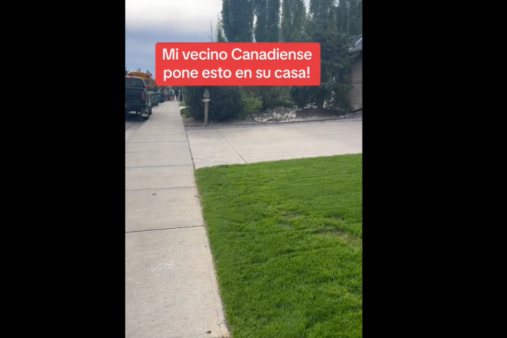 "¡Ay mi vecino! ¡Ya no puedo más! Solo pasa aquí, en Canadá. Miren lo que puso aquí", dice el hombre mientras enfoca una especie de buzón para el correo en el que se lee, en inglés: "Dulces gratis para perros".