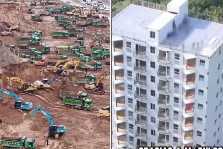 "China lo hizo de nuevo. En tiempo récord, construyó un edificio de 10 pisos en sólo 28 horas y 45 minutos, tras demoler valles para dar paso a esta impresionante obra. Gracias a módulos prefabricados de acero inoxidable, cada pieza llegó lista para ensamblarse con precisión milimétrica, incluyendo sistemas eléctricos y de fontanería", comienza en su video.