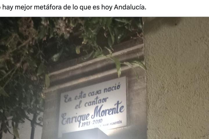 Ahora, justo debajo, hay una placa que anuncia un "alojamiento con encanto" en el número 9 de la Cuesta de San Gregorio. "La casa natal de Enrique Morente es un apartamento turístico. No hay mejor metáfora de lo que es hoy Andalucía", ha escrito en la red social de Elon Musk la persona que ha sacado la foto.