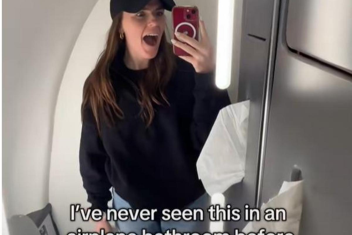 La usuaria de TikTok @carolinejay126 se fue de viaje, se subió al avión con normalidad y en mitad de trayecto, ya en el aire, fue al baño y al abrir la puerta se quedó alucinando con lo que había, por lo que no pudo evitar inmortalizar el momento.