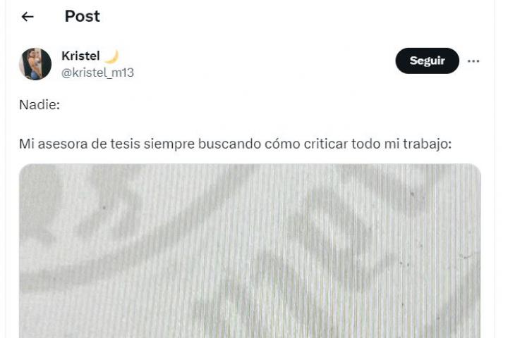 "Mi asesora de tesis siempre buscando cómo criticar todo mi trabajo", ha escrito la joven a modo de queja contra la docente.