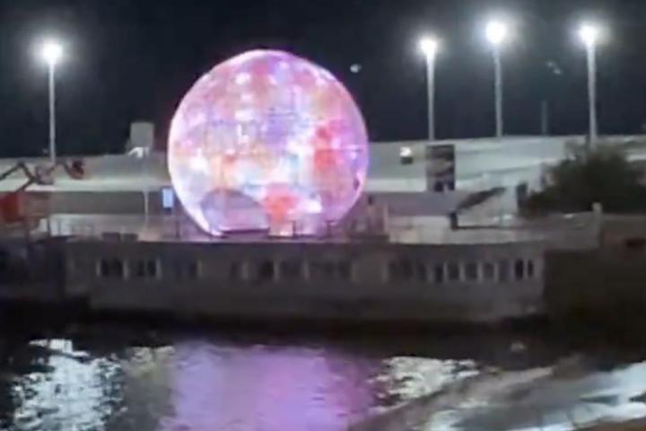 Tal y como ha compartido en TikTok @studio.valentin y ha replicado Líos de Vecinos en esta localidad han colocado a modo de adorno navideño una bola gigante que cambia de colores según suena la música.