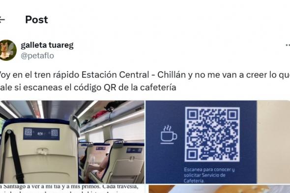 Le ha ocurrido a la usuaria de X @petaflo, que ha escrito: "Voy en el tren rápido Estación Central - Chillán y no me van a creer lo que sale si escaneas el código QR de la cafetería".