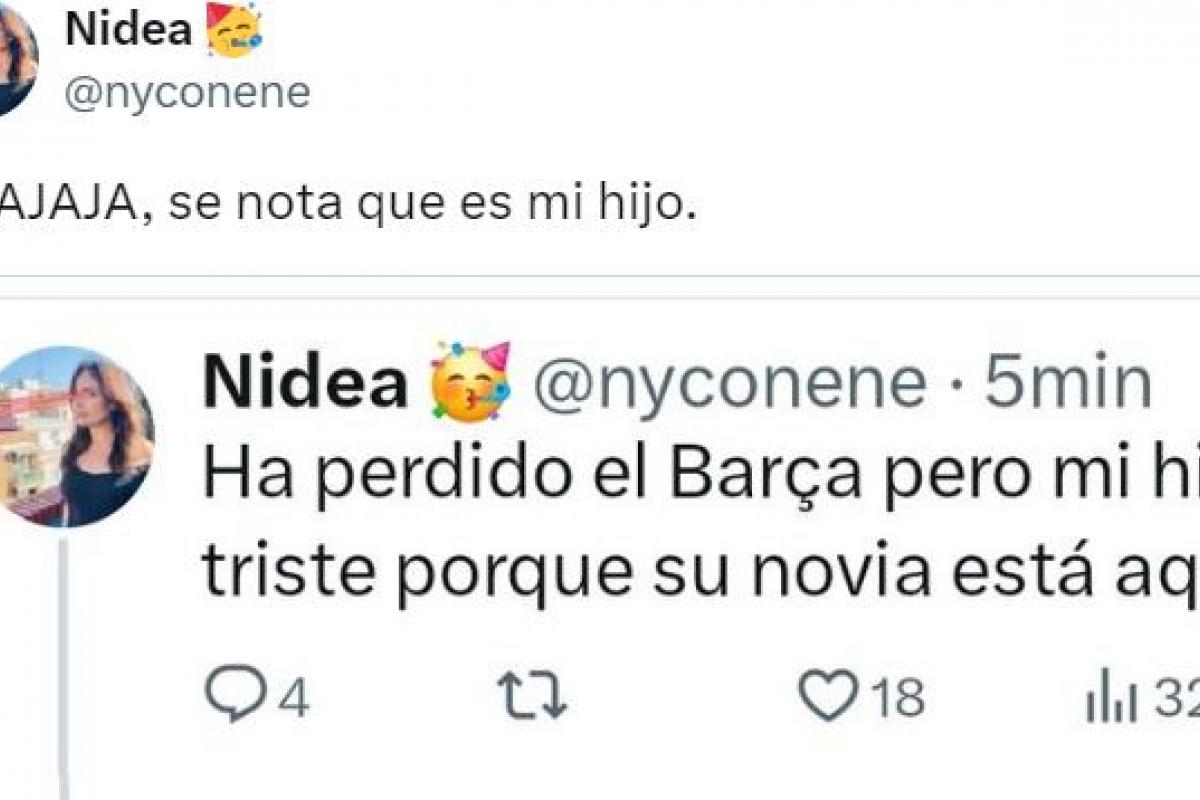 "Ha perdido el Barça pero mi hijo no está triste proque su novia está aquí en casa", escribió este sábado justo después del partido contra el Girona, que concluyó con un 4-2 y selló la victoria del Real Madrid en La Liga.