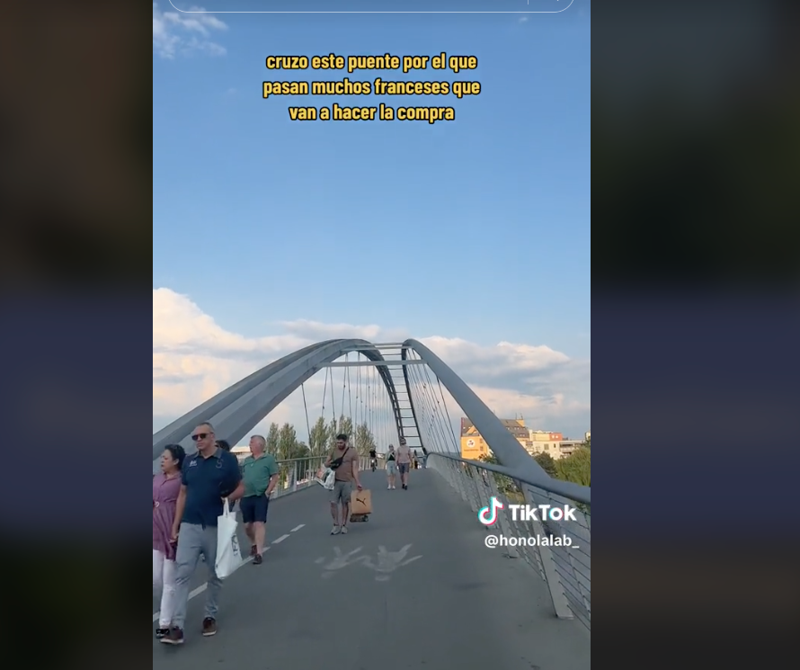 Explica que para llegar a ese otro país cruza un puente por el que van muchos franceses a hacer la compra a Alemania porque es más barato. Y justo desde allí se pueden ver a simple vista los tres países.