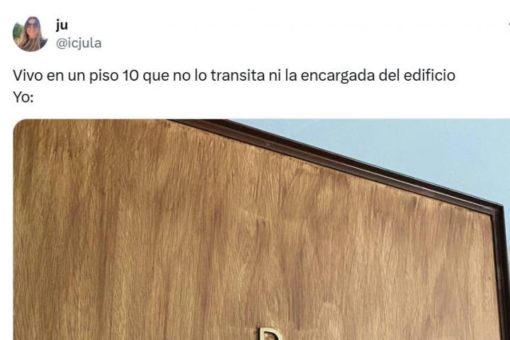 "Vivo en un piso 10 que no lo transita ni la encargada del edificio. Yo:", ha manifestado la usuaria, justo antes de adjuntar una imagen en la que se puede ver una corona circular navideña adornando la puerta de su casa.