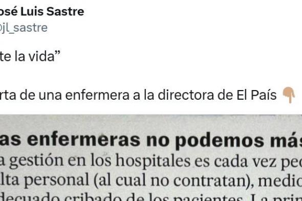 El periodista de la Cadena SER, José Luis Sastre, ha rescatado una reciente carta a la directora de El País de parte de Marta Maroco, una enfermera de Alcorcón (Madrid) que resume todo lo que está pasando con la sanidad.