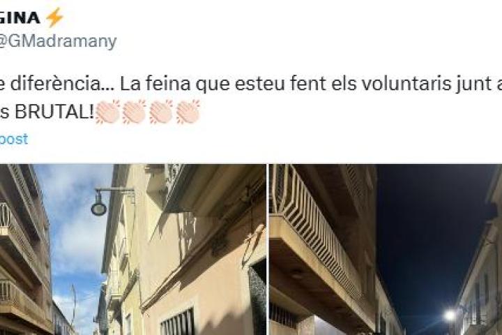 "Esto es un día de diferencia. El trabajo que estáis haciendo los voluntarios junto con los vecinos es BRUTAL", ha escrito Gina en el tuit, que ha acumulado más de medio millón de reproducciones y 27.000 'me gusta' en menos de 24 horas. La razón en sus palabras la certifica con las dos imágenes: por un lado, la calle devastada por las lluvias.