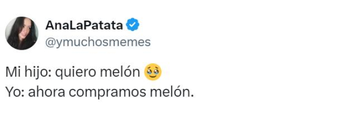 Fue en un paseo exterior en el que, de forma inocente, su hijo le advirtió de que quería melón (a toda costa). Ella, sin problema alguno, le contestó que ahora comprarían melón, satisfaciendo la necesidad extrema que tenía de esta fruta (y hortaliza).