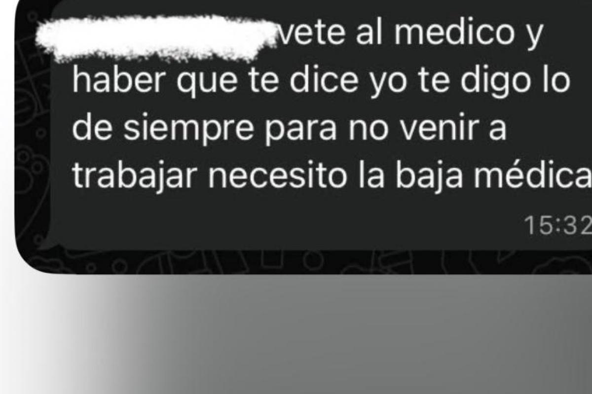 Según esas capturas, todo empieza con un mensaje de la jefa que le dice que si quiere faltar a trabajar, como es normal, necesita un papel del médico.
