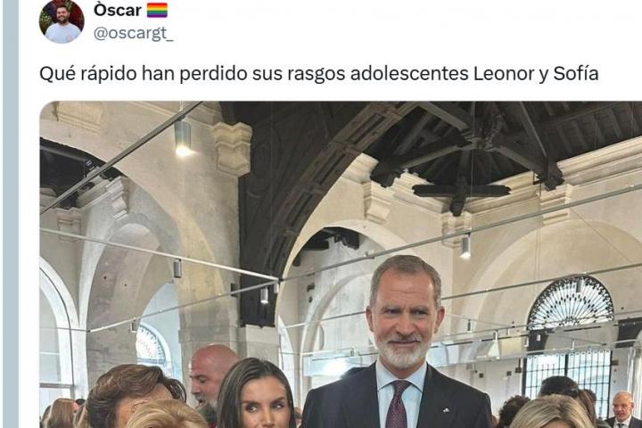 "Qué rápido han perdido sus rasgos adolescentes Leonor y Sofía", ha afirmado en un tuit, que se ha hecho viral y que en cuestión de pocas horas ha superado 780.000 reproducciones y los 36.000 me gusta.