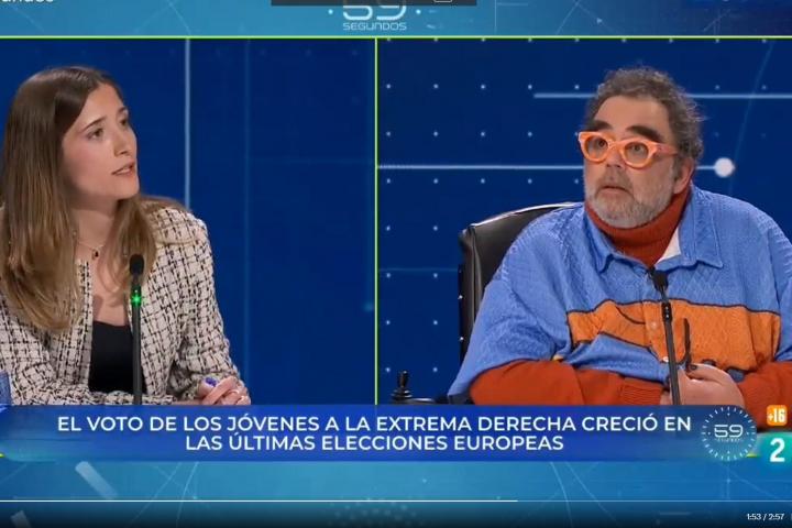 El escritor Bob Pop y la portavoz nacional de Juventud de VOX, Julia Calvet, tuvieron un enfrentamiento este miércoles en el programa de RTVE 59 segundos después de varios comentarios de la dirigente ultraderechista.