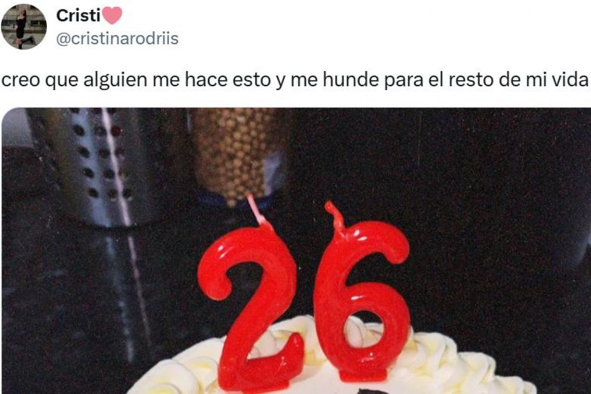 Aquí ha sido la usuaria Cristina Rodríguez (@cristinarodriis) la que ha compartido el pantallazo de esa tarta junto al siguiente mensaje: "Creo que alguien me hace esto y me hunde para el resto de mi vida".