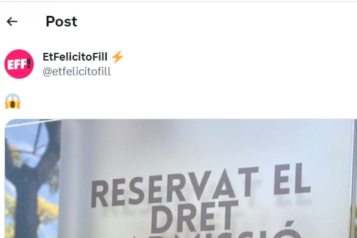 Ahora, la cuenta de Twitter @etfelicitofill ha publicado un letrero muy similar, sólo que en catalán porque está sacado de un local de esa comunidad autónoma.