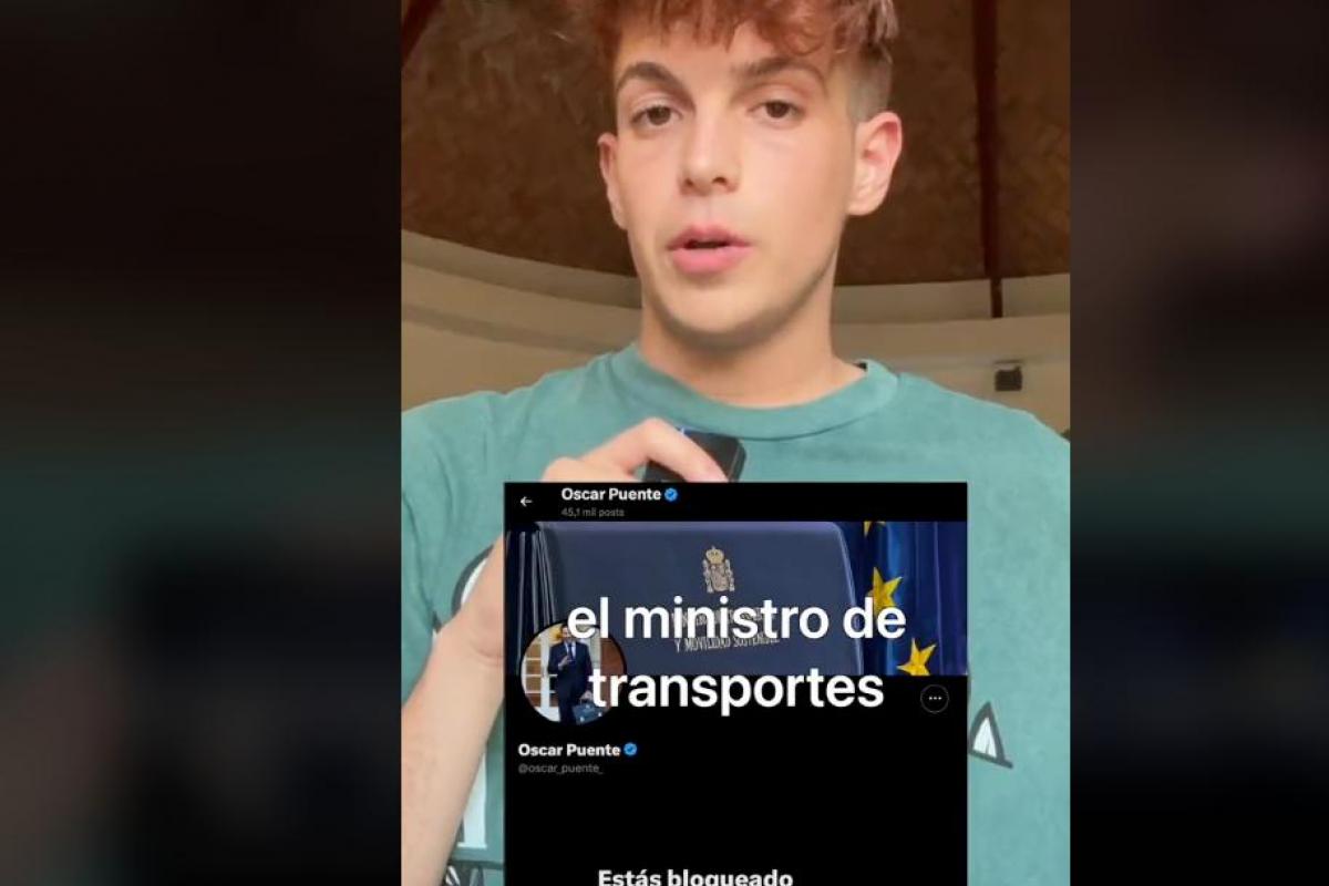 El popular creador de contenido Helio Roque (@helioroque_) ha publicado un vídeo en su perfil de TikTok, en donde tiene más de 150.000 seguidores, en el que ha contado cómo se enteró que el ministro de Transportes, Óscar Puente, le tiene bloqueado en X.