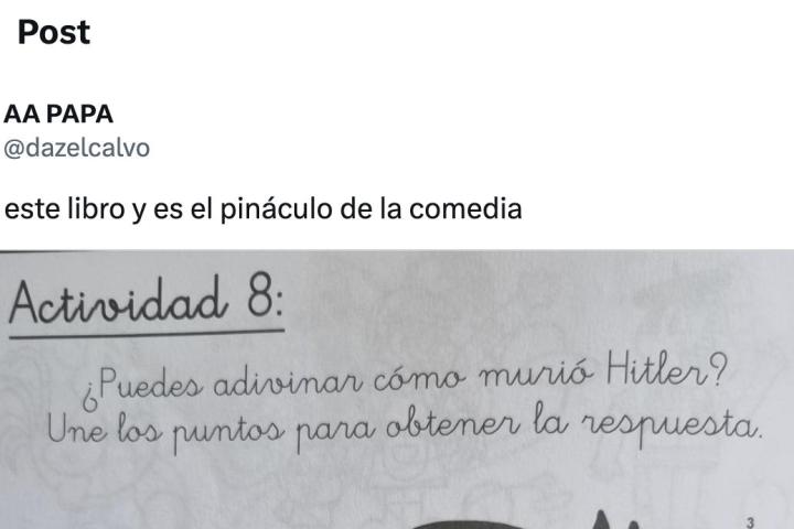 Pero todo empezó hace unos días cuando una usuaria compartió una hoja del libro de Don Julio donde se leía: "Franco también era amigo de Hitler y quería ser como él. Franco fue el dictador fascista que gobernó en España. Era bajito, calvo y con voz de pito, pero muy malo".