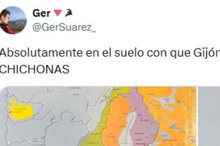 Por ejemplo, en las últimas horas el usuario @GerSuarez_ ha publicado un puzzle de toda Europa con los nombres de las ciudades o ríos en lituano. El tuitero se ha fijado dentro de España o Ispanija cómo se escribe Gijón, ya que se traduce como "Chichonas".