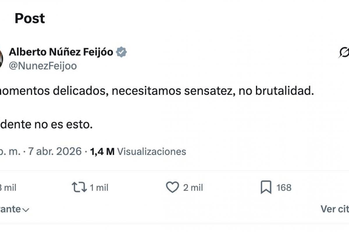 El líder del PP, Alberto Núñez Feijóo, ha sido tendencia en X en la noche del martes después de publicar un mensaje que muchos han visto "tibio" y como una recogida de cable.